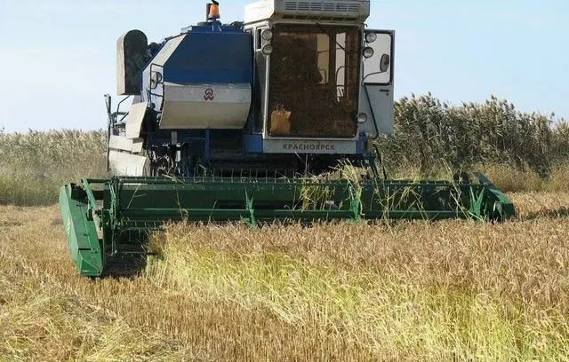 Жатка ЖВУ-5,1(рисовая),Для уборки риса жатку ЖВУ с помощью переходной рамки, которая ставиться на комбайн вместо наклонной камеры, можно навесить на рисовые комбайны ЕНИСЕЙ 1200 Р/РМ. Такой вариант жатки по конструкции полностью повторяет базовый вариант жатки, за исключением дополнительных кронштейнов, необходимых для крепления переходной рамки. Исходя из такой особенности конструкции осталась возможность агрегатирования жатки с энергосредствами КПС-5Г, Е-302…Е-304. Что позволяет применять одну жатку для уборки различных культур таких как: сеянные травы, зерновые и зернобоовые культуры, а также другие культуры. Тем самым позволяя экономить на дополнительном оборудовании для уборки урожая.